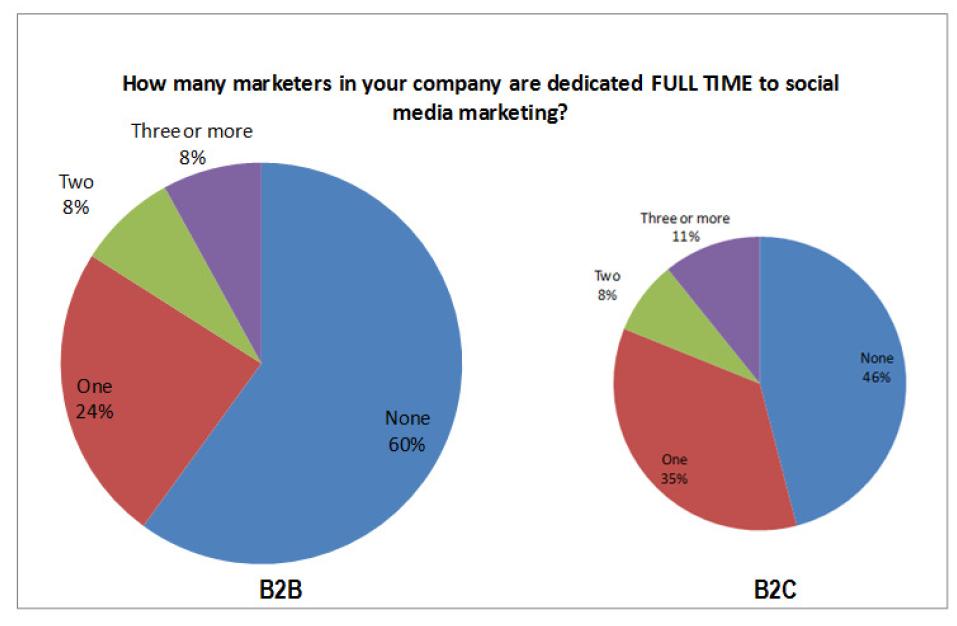 - Only 10% of B2B marketing companies have 5 or more part-time staff involved in social media compared to 19% in B2C.