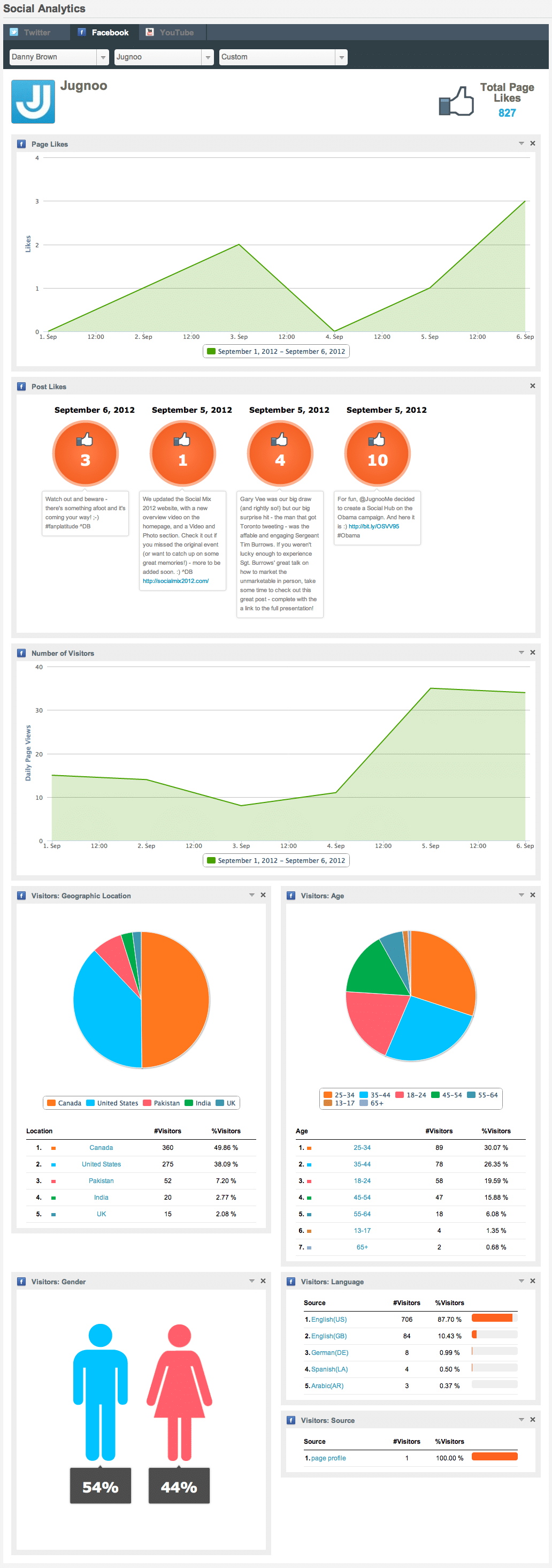 With Jugnoo’s social analytics, you can begin to learn more about your Facebook, Twitter and YouTube audience.