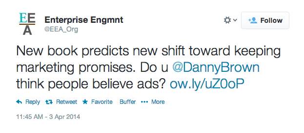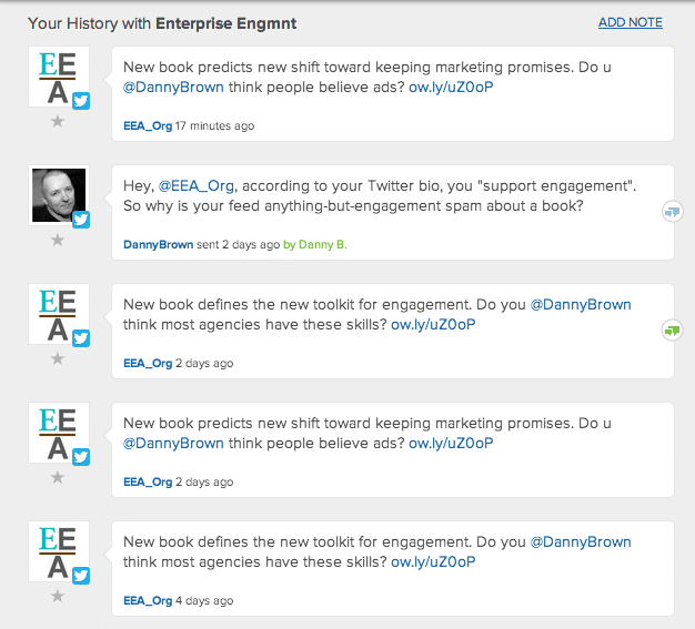 Instead of getting an answer, I simply got more of the same crappy spam blasting that makes me believe Enterprise Engagement Alliance represents not engagement, but everything that’s wrong about brands that just don’t “get” social media.