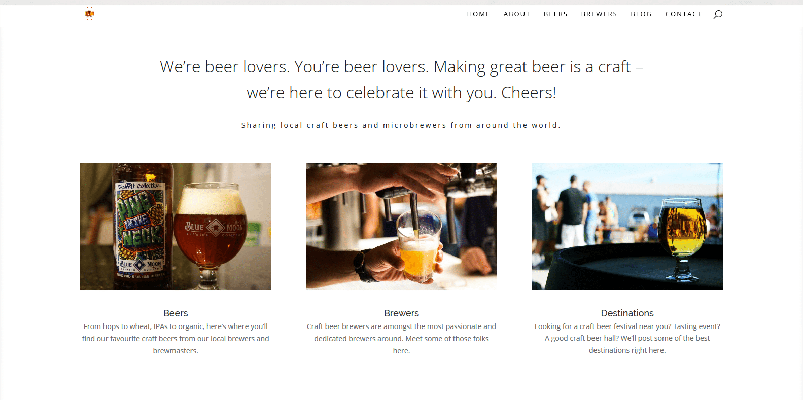 A single column content area keeps attention focused on the site’s goals: great beer, great pictures, great site.