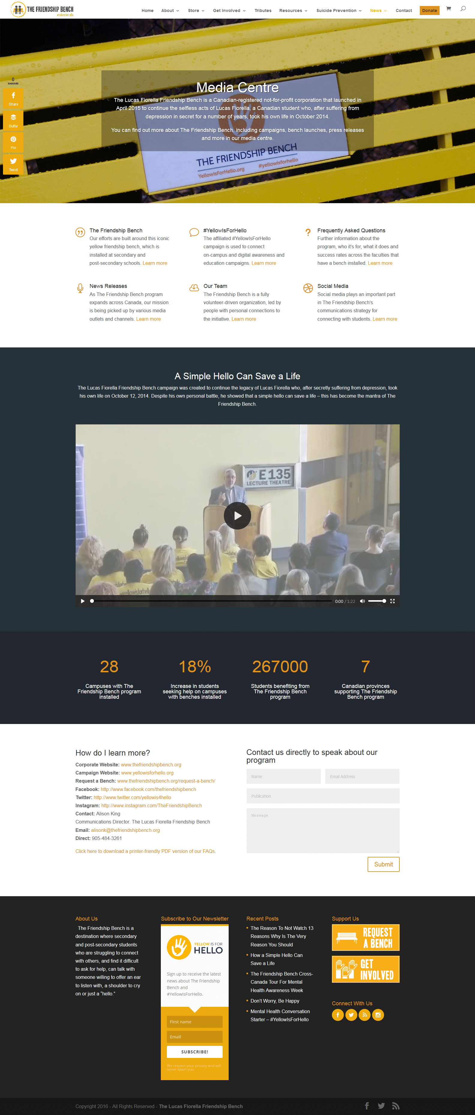 The finished site includes an e-commerce section to buy products directly from the site,?and an interactive map. built in partnership with Sensei Marketing, that uses geo-location to help students find the nearest Friendship Bench program, or mental health resources in their area.